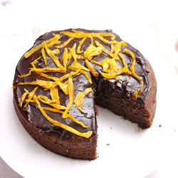 Получената еднородна маса изливаме в тава за печене и отгоре украсяваме с 1 супена лъжица настъргана кора от портокал. Поставяме тавата във фурната за 20 минути на 100 градуса.