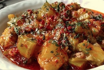 10. Похлупваме тенджерата с капак и оставяме яденето да се сготви на слаб огън за половин час.