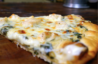 В една купа смесваме 1 1/2 супена лъжица доматен сос, 2-3 чаени лъжици зехтин и 1 щипка риган и разбъркваме. Изсипваме соса върху тестото.